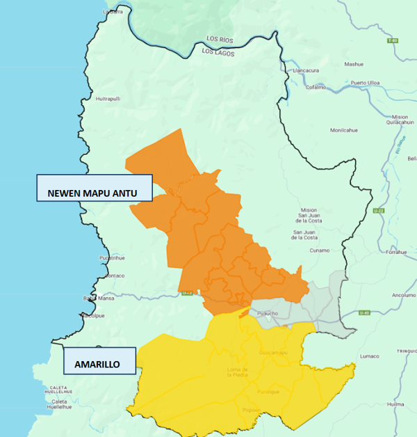 | Sector Amarillo (Territorio Rural Sur) | PSR Cuinco EMR Loma de la Piedra EMR Popoen EMR Huacamapu EMR Liucura |